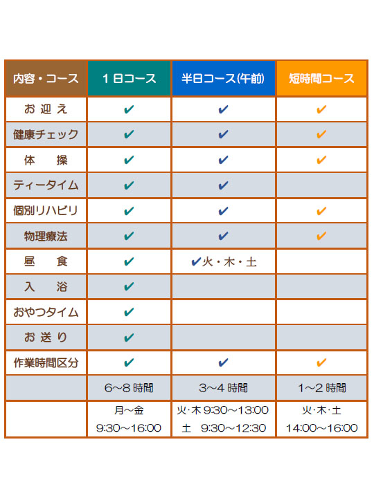 そのような声にお答えするために、「いきいき」では午前の半日コースもご用意いたしております。
