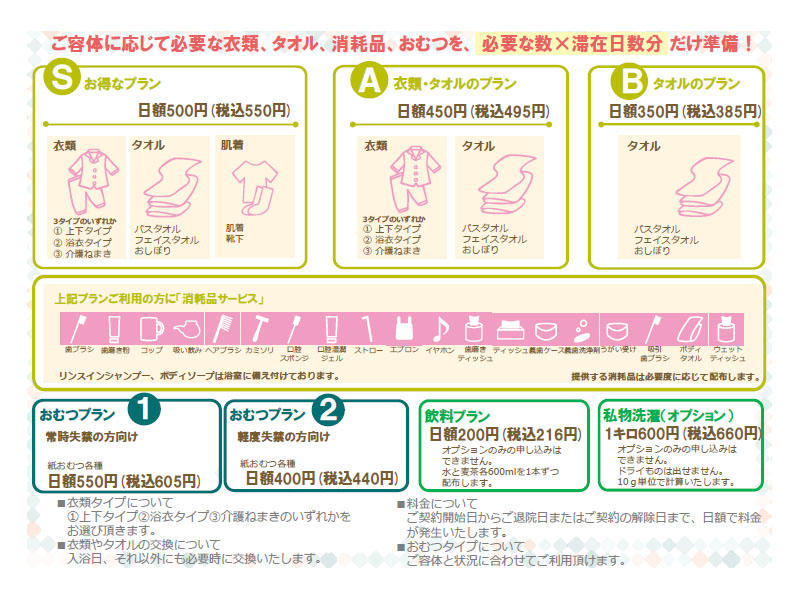 *おむつは当院で用意いたしております(有料)。原則、持ち込みはご遠慮ください。